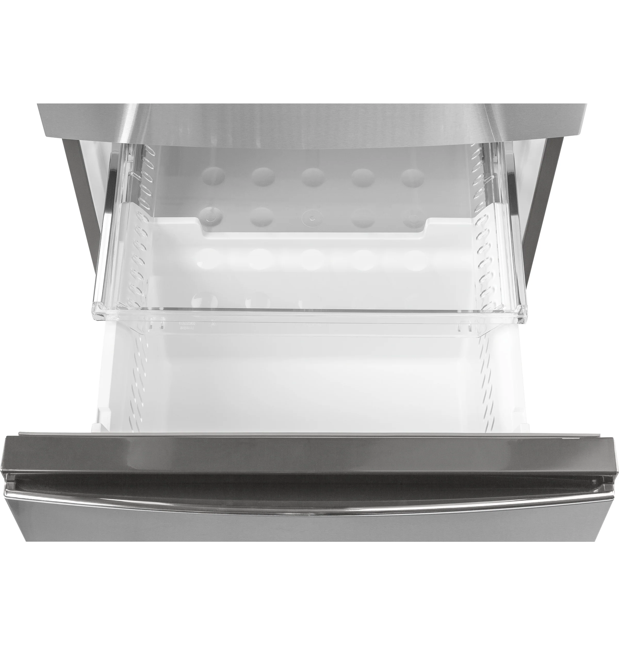 Temperature Management Features Air Tower with Electronic Controls Control Type Internal Electronic Digital Temperature Display Icemaker Optional (IM4D Ready) Performance Features Easily Removable Door Gaskets Sabbath Mode Yes Freezer Cabinet Drawer Features Drawer Divider and Pan, Two-Level Freezer System Defrost Type Frost Guard Leveling System Yes Fresh Food Cabinet Shelves 1 Adjustable, 3 Full-Width, 3 Total - Glass with Trim Fresh Food Door Bins 3 Full-Width, 3 Total Clear Look Freezer Features LED Lighting in Top Drawer, Spillproof Freezer Floor Exterior Style Counter-Depth Configuration Full Door and Double Drawer Refrigerant Type R600a Door Liner HIPS Dispenser Non-Dispenser Fresh Food Cabinet Shelf Features 1 Foldable Fresh Food Features Freezer Cabinet Drawers 2 Total Fresh Food Cabinet Drawers 1 Clear Snack Drawer, 1 TempSelectZone Crisper, 2 Total Clear Product Type Bottom Freezer Refrigerator OU Certified No APPEARANCE