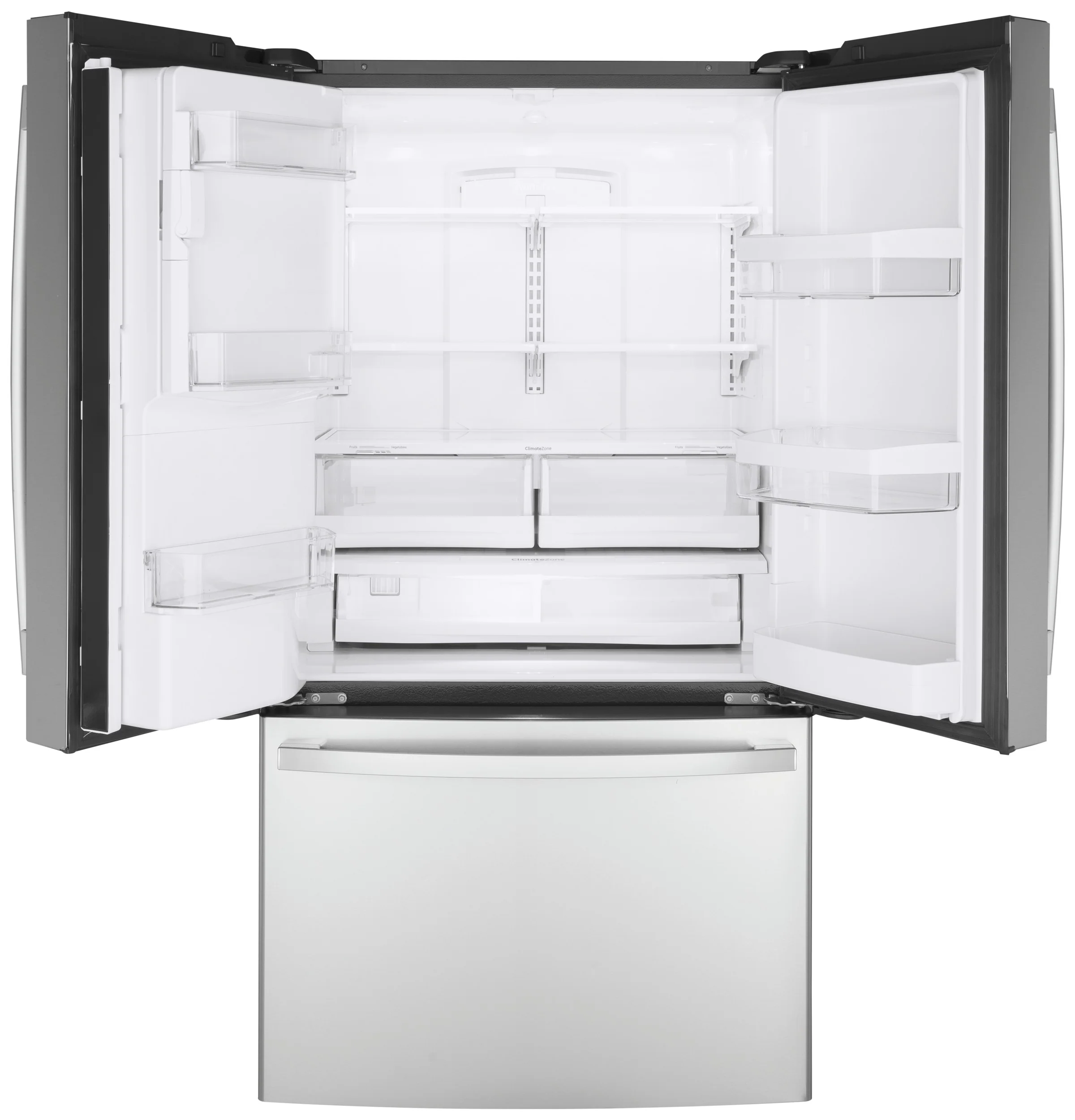 Temperature Management Features Turbo Cool setting Dispenser Features Door Alarm, LED Dispenser Light, Water Filter Indicator Light Control Type External Electronic Digital Temperature Display Icemaker Optional 2nd Icemaker (IM5D) in Freezer, Space Saving Ice WiFi Connect Optional (Requires part no. PBX23W00Y0) Performance Features Easily Removable Door Gaskets Sabbath Mode Optional Filter Location Left wall Freezer Storage Baskets 2 Full-Width Temperature Management System TwinChill⢠Evaporators Defrost Type Frost Guard Leveling System 2 Front Leveling Legs Fresh Food Cabinet Shelves 4 Spill Proof, 4 Split Adjustable; 1 Full-Width, 5 Total - Glass Fresh Food Door Bins 2 Adjustable with Gallon Storage, 6 Total Freezer Features Interior Lighting - Showcase LED (2), Turbo Freeze Exterior Style Counter-Depth Configuration French Door Refrigerant Type R600a Dispenser Cubes, Crushed Ice and Water, Large Color-Matched Fresh Food Features Fresh Food Cabinet Drawers 1 Full-Width, 2 Adjustable Humidity, 3 Total Water Filtration Advanced Filtration System (RPWFE), Removes Pharmaceuticals Product Type Bottom Freezer Refrigerator, Counter Depth Refrigerator, French-Door Refrigerator OU Certified OU/CRC Enhanced Shabbos Mode, when used with Shabbos Keeper, sold separately APPEARANCE