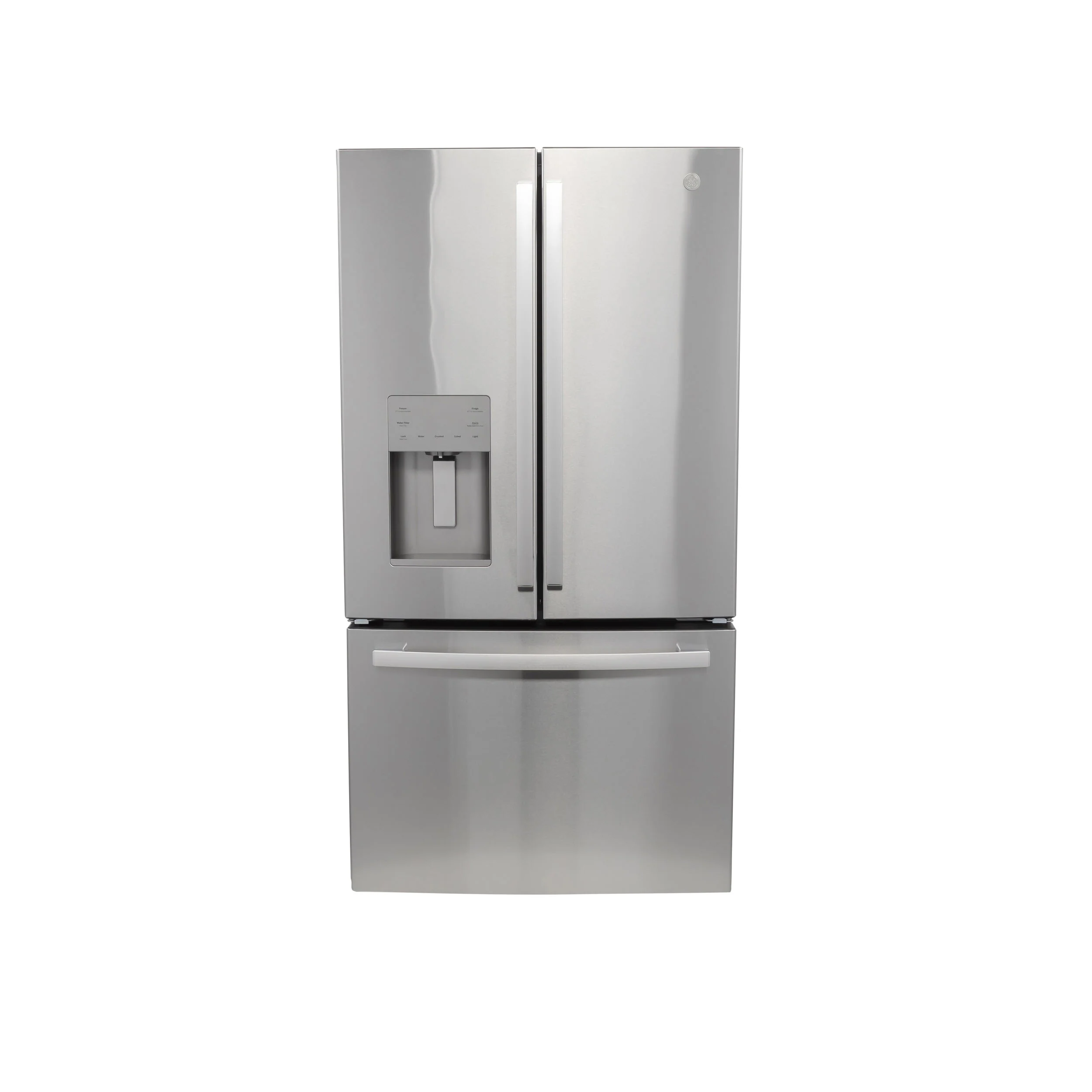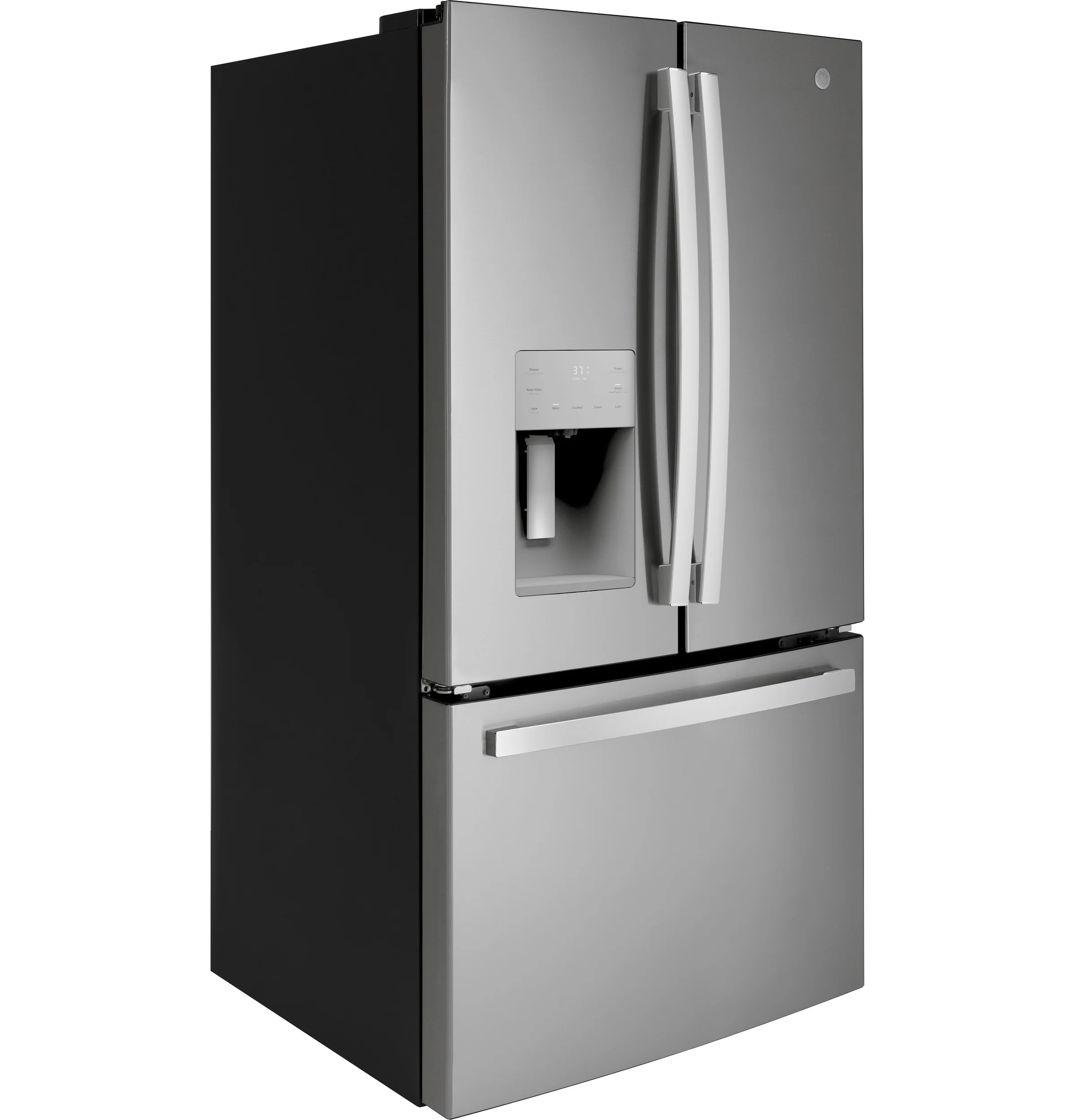 Temperature Management Features Multiflow Air System with Electronic Sensors, Turbo Cool setting Dispenser Features LED Dispenser Light, Water Filter Indicator Light Control Type Digital Temperature Display, External Electronic Temperature Controls Icemaker Factory-Installed WiFi Connect Optional (Requires part no. PBX23W00Y0) Performance Features Easily Removable Door Gaskets Sabbath Mode Optional Filter Location Upper right corner Door Alarm Yes Freezer Storage Baskets 1 Full-Width, Full-Extension Plastic, 2 Total Defrost Type Frost Guard Leveling System 2 Point Front Adjustable Fresh Food Cabinet Shelves 1 Quick Space Shelf, 4 Split Adjustable, 5 Total, Glass Fresh Food Door Bins 3 Adjustable with Gallon Storage, 4 Fixed, 7 Clear Look Freezer Features Interior Lighting - LED Exterior Style Free-Standing Configuration French Door Refrigerant Type R600a Door Liner HIPS Dispenser Cubes, Crushed Ice and Chilled Water, External Water Fresh Food Features Fresh Food Cabinet Drawers 1 Full-Width, Adjustable Temperature Drawer, 2 Humidity Controlled Drawers, Multi-Level Drawers Water Filtration GE Water Filtration (XWFE Filter), Water Filter Indicator Light Product Type Bottom Freezer Refrigerator, French-Door Refrigerator OU Certified OU/CRC Enhanced Shabbos Mode, when used with Shabbos Keeper, sold separately APPEARANCE