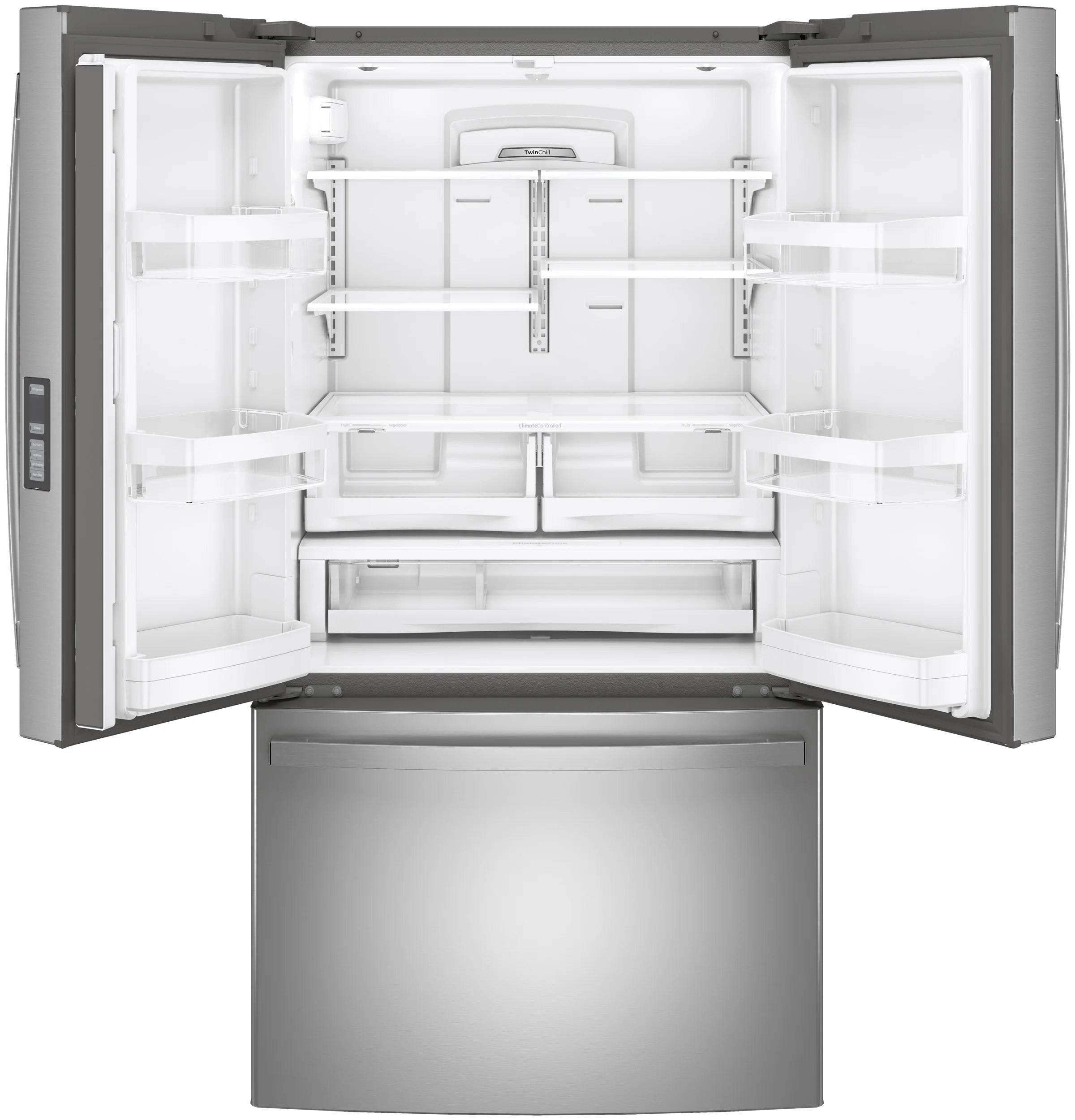 Control Type Internal Electronic Digital Temperature Display Icemaker Factory-Installed Performance Features Easily Removable Door Gaskets Sabbath Mode Optional Filter Location Left wall Freezer Storage Baskets 2 Full-Width Temperature Management System TwinChill⢠Evaporators Defrost Type Frost Guard Leveling System 2 Front Leveling Legs Fresh Food Cabinet Shelves 4 Spill Proof, 4 Split Adjustable; 1 Full-Width, 5 Total - Glass Fresh Food Door Bins 4 Adjustable with Gallon Storage, 6 Total Freezer Features Interior Lighting - LED (2) Exterior Style Free-Standing Configuration French Door Refrigerant Type R600a Dispenser Non-Dispenser Fresh Food Features Fresh Food Cabinet Drawers 1 Full-Width, 2 Adjustable Humidity, 3 Total Water Filtration Advanced Filtration System (RPWFE), Removes Pharmaceuticals Product Type Bottom Freezer Refrigerator, French-Door Refrigerator OU Certified OU/CRC Enhanced Shabbos Mode, when used with Shabbos Keeper, sold separately APPEARANCE