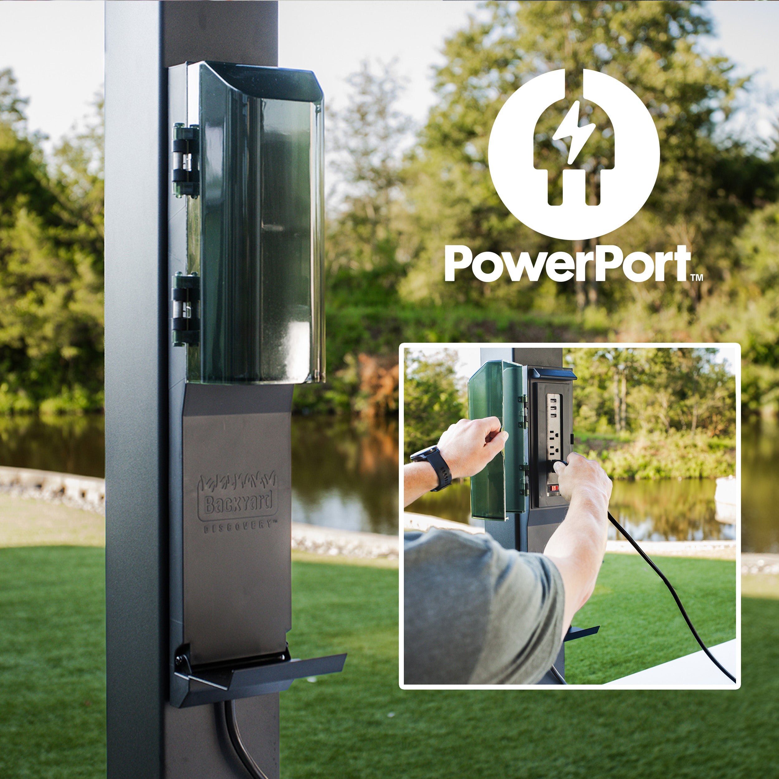 Powered Up: Patented PowerPort™ features 3 electrical outlets and 3 USB ports to power your outdoor kitchen, mounting easily to any post on the structure (power source not included)