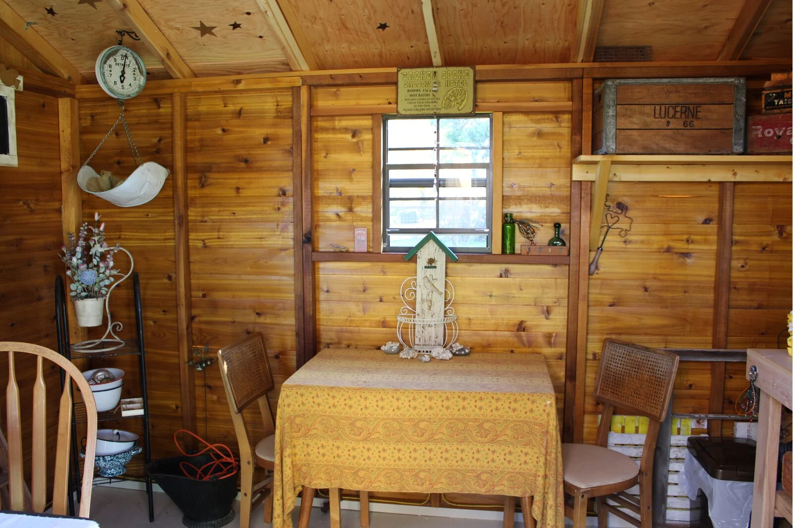- 2 ft. x 4 ft. cedar joists and floor runners included for the floor frame, 5/8 in. plywood floor included to walk on