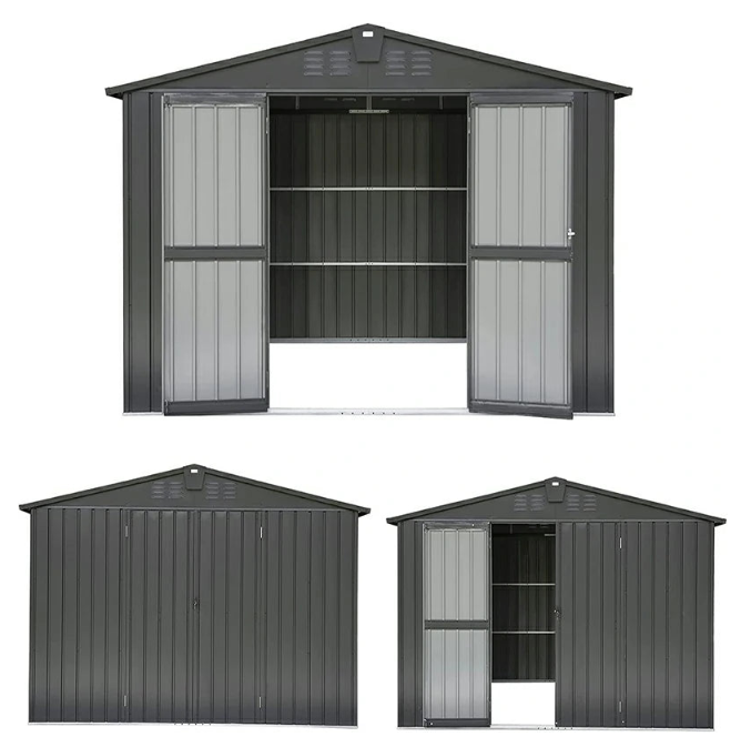 The outdoor metal tool shed helps hide your yard waste and large equipment, avoid clutter in your yard, basement, or garage. The garden storage shed adds a crisp clean appearance that blends perfectly with any exterior design or landscaping.